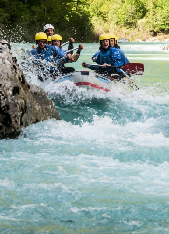 We gather in our office in the centre of Bovec. There you will complete all the formalities. Than our driver will take you to our base to pick up all the equipment, where you will meet your rafting guide.